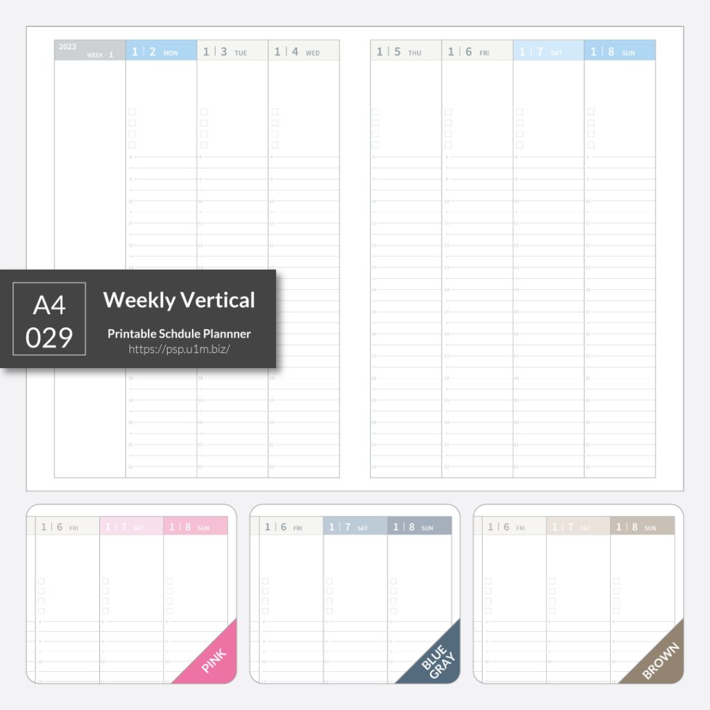 【pdf de calendar】A4_029_週間バーティカル[A4Y,W/V,Mon,T8-22]