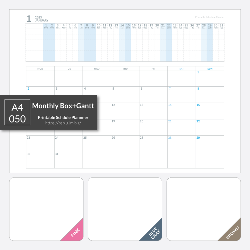 『A4_050_月間ガントチャート+ボックス』の2023年版もよろしくおねがいします。