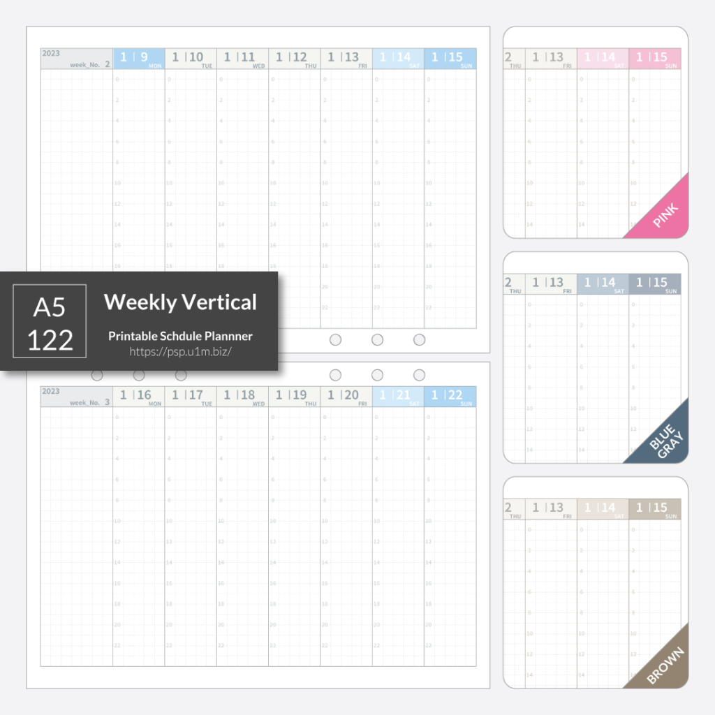 【pdf de calendar】A5_122_週間バーティカル(横使い)[A5,W/V,Mon,T0-23]