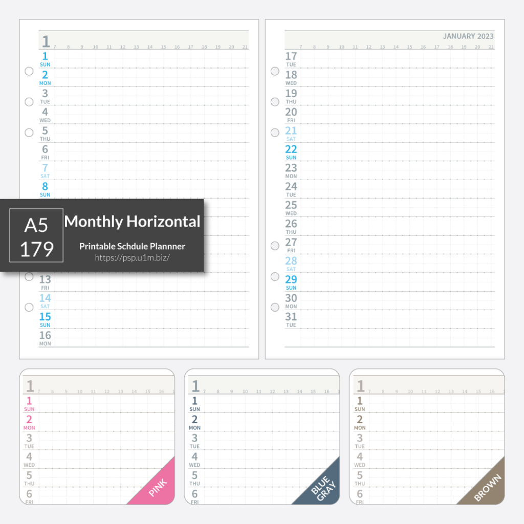 【pdf de calendar】A5_179_月間ホリゾンタル[A5,R,M/H,T7-21]