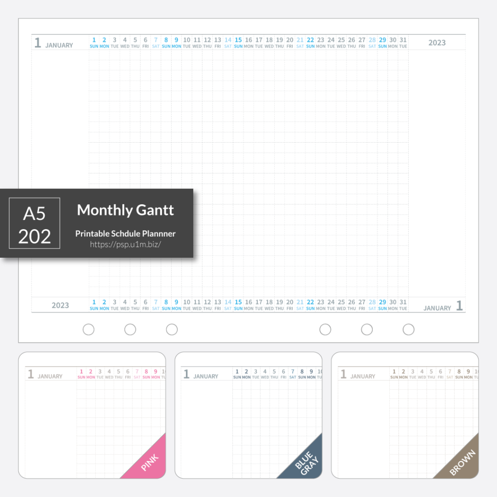 【pdf de calendar】A5_202_月間ガントチャート[A5,L,M/G]