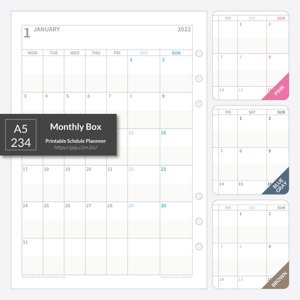 【pdf de calendar】A5_234_月間ボックス(Left)[A5,L,M/B,Mon]